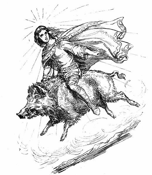 Al igual que su hermano Freyr, Freya posee una cerda o jabalina, símbolo de fertilidad a la vez que fuerza en combate, aunque en este último aspecto es más destacable que Freyja también cabalga un jabalí de cerdas doradas llamado Hildisvíni ("Cerdo de batalla") que aparece solamente en el poema Hyndluljóð. (Luego se relata en esta obra que este jabalí es su protegido o su amante humano Óttar temporalmente disfrazado como Hildisvini o transformado en jabalí con las artes mágicas del Seidr).