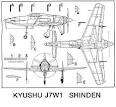 Kyushu J7W1 Shinden (relámpago sacudidor) . Fue un Avión prototipo de combate japonés impulsado a hélice de la Segunda Guerra Mundial que fue un diseño de avanzada. El sufijo Den (idioma japonés: Rayo) era la denominación de la Armada Imperial Japonesa para los interceptores..J era la designación de la Armada Imperial para los cazas basados en tierra. W era la descripción del manufacturador, en esta ocasión Watanabe después Kyushu. O sea J7W Shinden era un caza interceptor basado en tierra hecho por Watanabe (Kyushu)