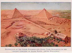 La pyramide était la demeure éternelle du pharaon. Celui-ci était accompagné dans l'au-delà par ceux qui l'avaient servi pendant sa vie terrestre, c'est-à-dire les nobles, les scribes, les reines. Ceux-ci faisaient construire des tombeaux (des mastabas ou de petites pyramides pour les reines) à proximité du tombeau de leur roi.