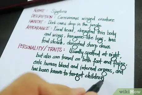 Come up with a name for your monster character. The first step is to think of a name for your monster, it can be as cool, crazy, or scary as you like or you can give it a name like Bob or Billy.