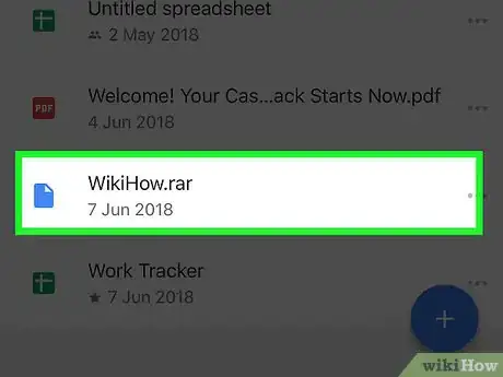 2Open your RAR file. Open the app in which the RAR file is stored, then tap the RAR file. It will "open" to a grey screen with the RAR file's name in the middle of the screen.