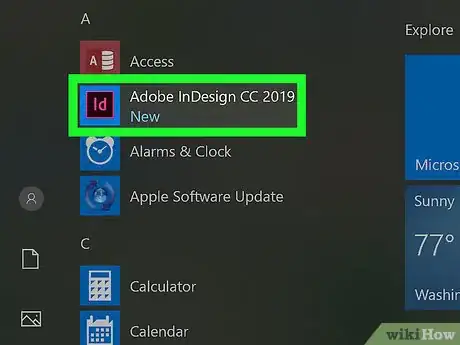 1Abre Adobe InDesign. Los usuarios de Windows lo encontrarán en el menú "Inicio", mientras que los de Mac lo encontrarán en la carpeta de Aplicaciones.