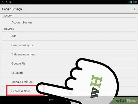 2Selecciona "Buscar y Ahora". Esta opción estará cerca de la parte inferior de la pantalla de Google Settings.