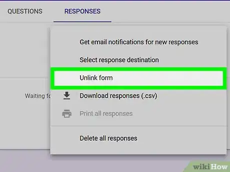 6Haz clic en Desvincular. Las respuestas al formulario dejarán de registrase en la hoja de cálculo.Anuncio