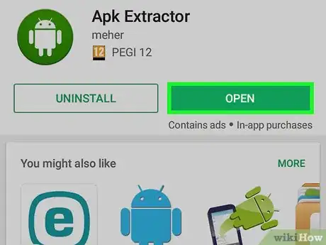 1Abre APK Extractor. Es una aplicación verde con un robot de Android blanco encima. La aplicación APK Extractor te permitirá guardar el archivo APK de una aplicación en la memoria de tu Android, momento en el cual podrás compartir el archivo.[1]