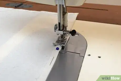 5Crea una costura superior para sujetar el dobladillo. Cose tan cerca del borde inferior como puedas. Si usaste alfileres para sujetar la tela, asegúrate de retirarlos conforme avanzas. Puedes usar un hilo del mismo color que la tela o uno de un color que haga contraste para crear un acabado más interesante.