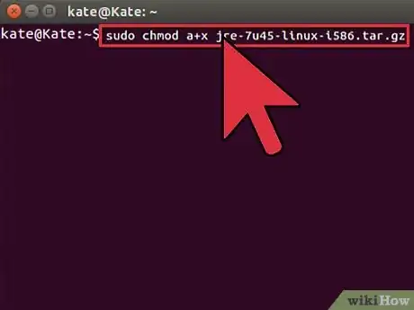 6Ejecuta los siguientes comandos en los archivos tar.gz de Oracle Java que acabas de descargar. Asegúrate de hacer esto desde raíz para poder hacer que sean ejecutables para todos los usuarios en tu sistema. Para abrir la terminal como raíz, teclea “sudo -s” (sin comillas) e introduce la contraseña de inicio de sesión.