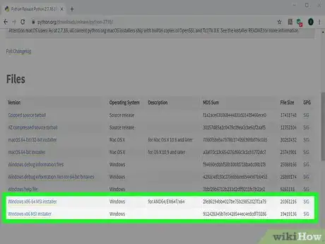 2Desplázate hacia abajo y haz clic en una versión de Python 2. Las versiones aparecerán bajo el encabezado "¿Buscando una versión específica?".