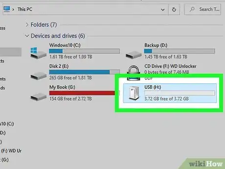7Selecciona la unidad flash USB. Usa el menú desplegable debajo de "Dispositivos" para seleccionar la unidad flash USB.