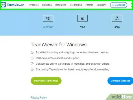 1Dirígete a https://www.teamviewer.com/en/download en un navegador web. Puedes usar TeamViewer para controlar remotamente otra computadora Windows o Mac desde la tuya. TeamViewer es gratuito para uso privado o no comercial.[2]