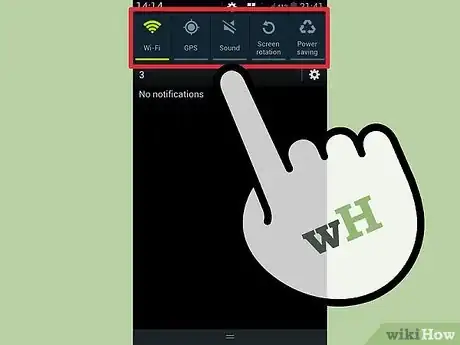 1Abre al panel de notificaciones. Desliza la barra de estado hacia abajo para acceder a dicho panel. En la parte superior de la pantalla, podrás ver los ajustes rápidos representados por íconos que se activan o desactivan al tocarlos.