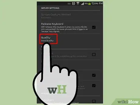 5Ajusta la calidad de transmisión. En la misma pantalla, puedes cambiar la calidad pulsando la opción que prefieras. La calidad es básicamente cómo controlas el teléfono, que depende de la velocidad de la conexión de Wi-Fi. Por ejemplo, si eliges “Buena calidad” (good quality), funcionará a la perfección. Sin embargo, si eliges “Alta calidad” (high quality), puede haber algunos retrasos en el teléfono que está siendo controlado.