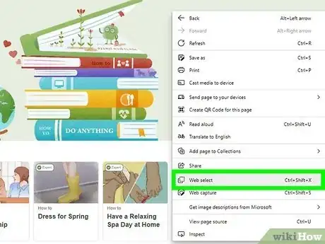2Haz clic derecho en una zona en blanco de la página y elige Seleccionar web. Asimismo, puedes presionar Ctrl + Mayús + X (PC) o Comando + Mayús + X (Mac) para abrir rápidamente la herramienta.