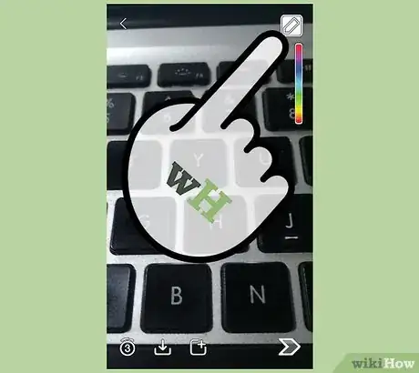 2Toca el botón del lápiz para habilitar el modo de dibujo. Ahora podrás dibujar sobre tu Snap usando tu dedo. Aparecerá también un deslizador de colores en el lado derecho de la pantalla.