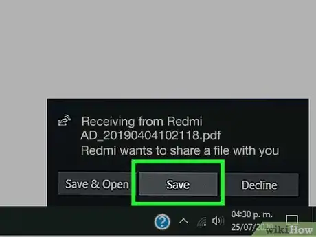 16Haz clic en el mensaje de confirmación en la computadora. Si se te pide que aceptes o rechaces la transferencia de archivos en la computadora, haz clic en Sí.