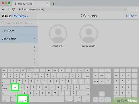 5Selecciona todos los contactos. Presiona Ctrl+A (o Comando+A en Mac) para seleccionar todos los contactos.