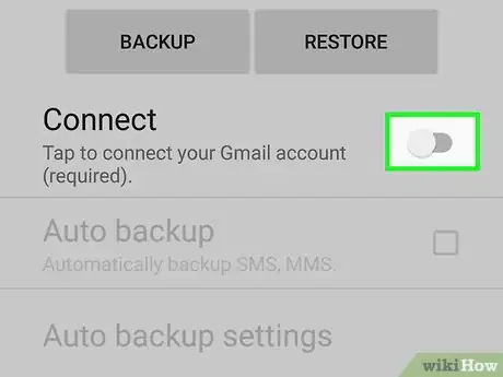 3Conéctate a tu cuenta de Gmail (SMS Backup+). SMS Backup+ crea un respaldo de tus mensajes de texto en tu cuenta de Gmail. Toca "Connect" (conectar) para seleccionar tu cuenta. Utiliza la misma cuenta de Gmail que usa tu dispositivo Android para que el proceso de restauración sea más fácil.[1]