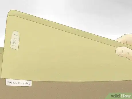 3Gardez un fichier, afin de pouvoir garder toutes vos recherches au même endroit. Si possible, faites des dossiers en fonction des différents sujets. Vous pouvez également utiliser un système de fichier électronique, comme Evernote, pour garder les scans, les sites web et les notes ensemble.