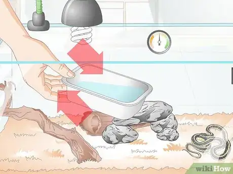 - Lorsque le serpent mue, déplacez le bol d'eau du côté plus chaud du terrarium pour faire monter le taux d'humidité dedans.