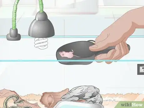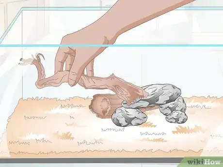 4Lorsque vous le nourrissez, ne lui jetez pas la nourriture au museau. Vous allez lui faire peur. Laissez-la au milieu du terrarium. N'oubliez pas qu'il n'aime pas les mouvements brusques. Bougez doucement sans oublier de refermer rapidement le couvercle une fois que vous avez dépassé la nourriture.