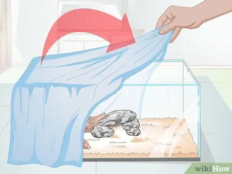 5Couvrez le terrarium. Pour la sécurité du serpent lorsque vous le ramenez à la maison, mettez un couvercle ou une grande serviette (pas trop épaisse pour laisser passer l'air) tout autour et sur le dessus du terrarium. Cela l'aidera à se détendre et à se sentir un peu plus en sécurité, car la couverture va lui donner l'impression de ne pas être chassé.Publicité