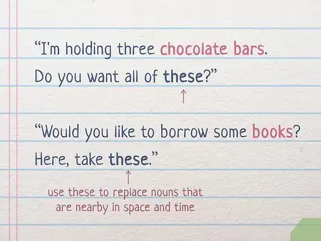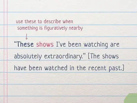 Choisissez these pour désigner quelque chose qui se situe près de vous physiquement. This et these sont à utiliser lorsqu'une personne parle d'une chose proche d'elle. Vous emploierez these pour mettre l'accent sur ces éléments [2] .