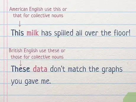 • L'anglais britannique ne suit pas tout à fait la même règle que l'anglais américain concernant les noms qui ne peuvent être quantifiables. Ainsi, quelques noms comme « crowd » ou « data » seront accompagnés de these ou those en anglais britannique. Par exemple, « I have forgotten these data ».