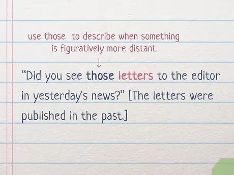 Choisissez those lorsque l'objet en question est éloigné de vous. That et those seront utilisés pour des éléments bien éloignés de la scène de dialogue, au sens propre comme au sens figuré. L'objectif dans ce contexte est de mettre l'accent sur cet élément [5] .