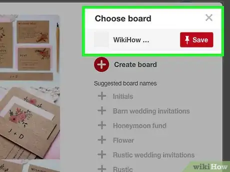 5Sélectionnez un tableau quand vous y serez invité. Cela ajoutera votre épingle au tableau en question.