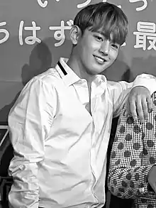 Prior to his debut as a recording artist, Kim appeared on Seoul Broadcasting System's (SBS) 2009 television series Green Coach.[5] He was also cast in KBS2's drama Believe in Love as Lee Seong-min, a member of a fictional idol group.[6] Kim served as a backup dancer for Hwanhee during performances of the single "Love Pain" and was featured on the album track "I Love You I Love You".[7] He debuted as a rapper in the idol group Myname in 2011.[1] He was a trainee for an accumulated five years and nine months, the longest period among his bandmates.[2][8] The group released its debut single "Message" on October 28.[9] A Japanese-language version of the song was released the following July, which served as its introductory single in the country.[10] The group was simultaneously active in the music industry of both countries.[11] Beginning in 2015, Myname's promotional activities in South Korea waned.[11]