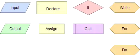 Flowgorithm combines the classic flowchart symbols and those used by SDL diagrams. The color of each shape is shared by the associated generated code and the console window. The colors can be changed to several built-in themes.[2] See Wikipedia:Flowchart#Common_Shapes for an explanation of common flowchart shapes and their usage.