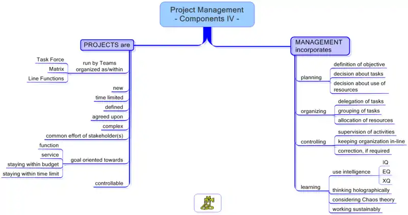 - Wikiversity:Main Page --> Practical Arts and Sciences --> School of Project Management --> Project Management - A course in Project Management based on Mindmaps