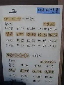 Ferries from GeoGu port of Geoje island. Most ferries stop at Daemauldo first, then proceed to Somaemuldo. Make sure to get off at the right island.
