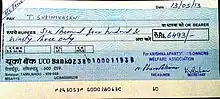 - (Australia, Canada, India, New Zealand, UK) A draft directing a bank to pay money to a named person or entity.