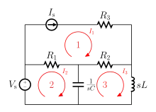- (electronics) In mesh analysis: a loop in a electric circuit (to which Kirchhoff's voltage law can be applied).