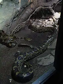 From scientific Latin python, from Ancient Greek Πύθων (Púthōn), the name of the mythological enormous serpent at Delphi slain by Apollo[1], from Πῡθώ (Pūthṓ), the early name of Delphi, from πύθω (púthō, “to rot, to decay”).
