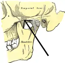 - (anatomy) A protrusion from the rest of the skull, most of it belonging to the zygomatic bone, but also contributed to by the frontal bone, maxilla and temporal bone.