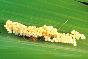 Many natural enemies of the African stalk borer have been recorded in Africa. The most important are predatory ants, parasitic wasps and parasitic flies. Parasitic wasps may attack eggs (e.g. Trichogramma spp. and Telenomus spp.) or caterpillars (e.g. Bracon spp and Cotesia sesamiae). Tachinid flies parasitise caterpillars. Cotesia sesamiae is the most common larval parasitoid (attack caterpillars) of this stemborer on maize in eastern Africa.