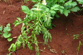 This disease occurs with bad drainage, especially in the hot, wet season and is often combined with symptoms of root-knot nematodes. Plants wilt and die suddenly. When newly infected stems are cut crosswise and placed in water, a greyish or yellowish ooze appears from the cut stem. The pathogen is soil-borne with a wide host range. Root-knot nematode infestation aggravates the disease development.