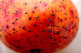 While anthracnose generally attacks ripe fruits (and blossoms), a bacterial infection from Erwinia sp. can also affect young fruit. The symptoms are very similar to the flecks caused to the leaves and fruit by anthracnose. The bacteria usually survive in the ground - a heavy rainfall will then splash the spores against the lower leaves and fruits. Covering the ground can therefore help to protect against this. Active life in the soil will also help to prevent an explosive growth of bacteria. Sites where it can rain inside the blossoms can also be a problem.