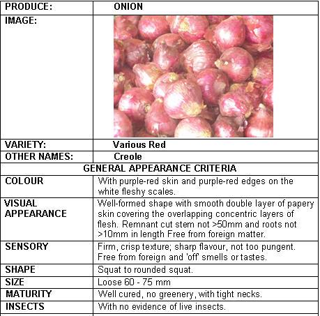 - 'Red Creole'. This is a popular standard variety in high demand because of its good keeping quality. It produces mainly single onions from transplants, red, flat-round and with a pungent taste.