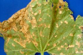 The bacteria can also survive in soil or infected crop debris. Drainage water can spread the bacteria in the soil. Angular leaf spot disease is favoured by wet conditions, frequently associated with rainfall and overhead irrigation. Optimum temperature for disease development is 23.9 to 27.8º C. The disease attacks gherkin, muskmelon, pumpkin, squash, vegetable marrow and watermelon.