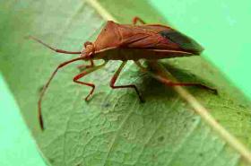 Adult bugs are reddish brown in colour and 12 to 14 mm long. Nymphs are red brown to green brown in colour and have long antennae. Bug feeding causes necrotic bruise-like depressions; a hard lump develops, which can be easily removed when the fruit is peeled. The bug sucks on the developing fruits causing pockmarks. The kernels are also affected showing spots, which lower their market value.