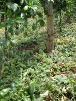 | Healthy Desmodium soil cover in Passion plantation reduces weeding costs and benefits soil and crop. When the legumes become too vigorous, they can be cut and used as animal feed or mulch for other crops. |