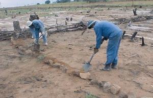 | Reabilitation of degradeded rangeland in its initial stage: stone lines are established after the area has been cleared of invasive tree species (South Africa) |