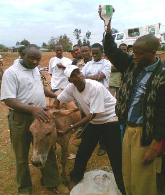 - The donkey will need a treatment of 5 days Penstrep antibiotic (readily available in East Africa).