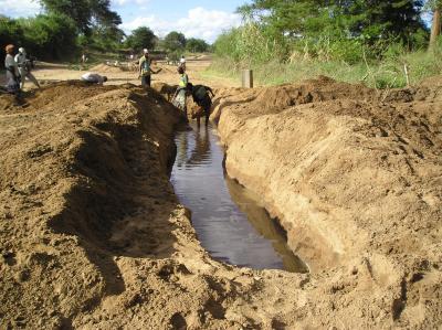 In order to get a maximum volume of water for a minimum of work and investment, the walls of subsurface dams, weirs and sand dams should, whenever possible, always be constructed on underground dykes that are situated downstream of underground water reservoirs, identified by waterholes, water-indicating vegetation, dowsing and probing.