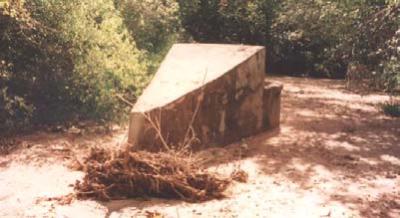 Hand-dug wells situated in riverbeds must be equipped with a well-head to prevent the well shaft being filled with sand during floods such as this hydro-dynamic well-head used in Sudan. It is shaped as a wedge to break the force of floods. |