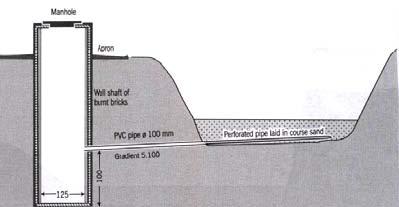 Infiltration pipes can also be installed in a hole drilled buy a jet of water form a length of steel pipe connected to petrol powered pump with a flexible hose pipe.