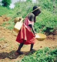 People who cannot afford to buy water have to walk to water holes. Normally women have to walk several km to a water hole and back home with a 20 litres jerry-can (20 kg) of water on their back every second day. This can be observed in both wetter and drier regions as well as in towns. |